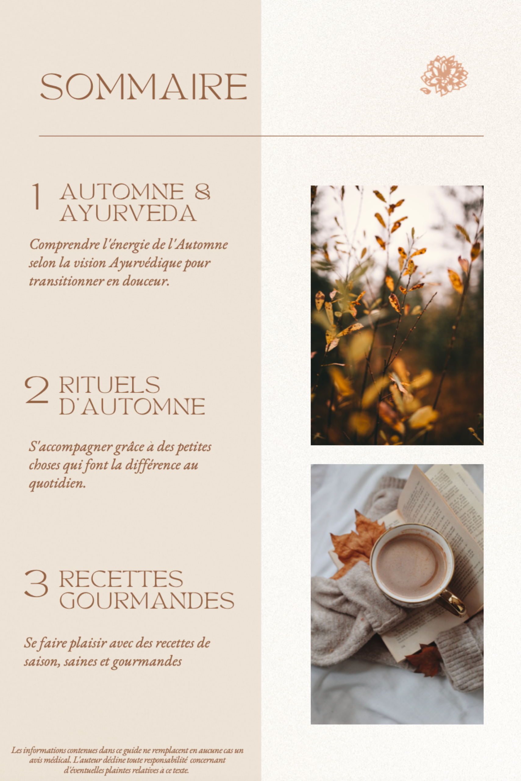 Dans ce guide nous explorons l’énergie de l’automne pour transitionner en douceur, les déséquilibres de saison et les solutions, des rituels qui font la différence au quotidien ainsi que des recettes gourmandes, de saison et saines.